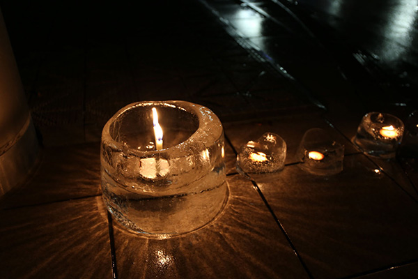 クリスマス・イブの12月24日(水)、理学部正面が優しいキャンドルの灯りに包まれました。 これは、雪や氷の結晶の研究を専門とする理学部の島田 亙准教授が企画・制作したアイスランタンで、この日は夕方4時半ごろから並べられました。聖なる夜に素敵なプレゼントとなりました。