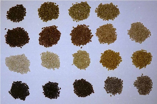 富山大学理学部では、様々なゴマ属植物(ゴマ遺伝資源)を保存しており、栽培ゴマの保存系統数は1,000を超えています。ゴマ遺伝資源の保存は、故小林貞作教授が始め、以来50年以上に亘り行っています。我々は、毎年これらゴマ系統を栽培し種子を取ることで系統保存をする(約5年間ですべてのゴマ系統の種子を更新しています)(図1)とともに、ゴマ系統の形態、栽培・生育特性、およびゴマの可食部である種子に含まれる脂肪酸やリグナン(セサミンなど)といった成分の調査(図2 ,3)を行い、それぞれのゴマ系統の特徴づけを行っています。